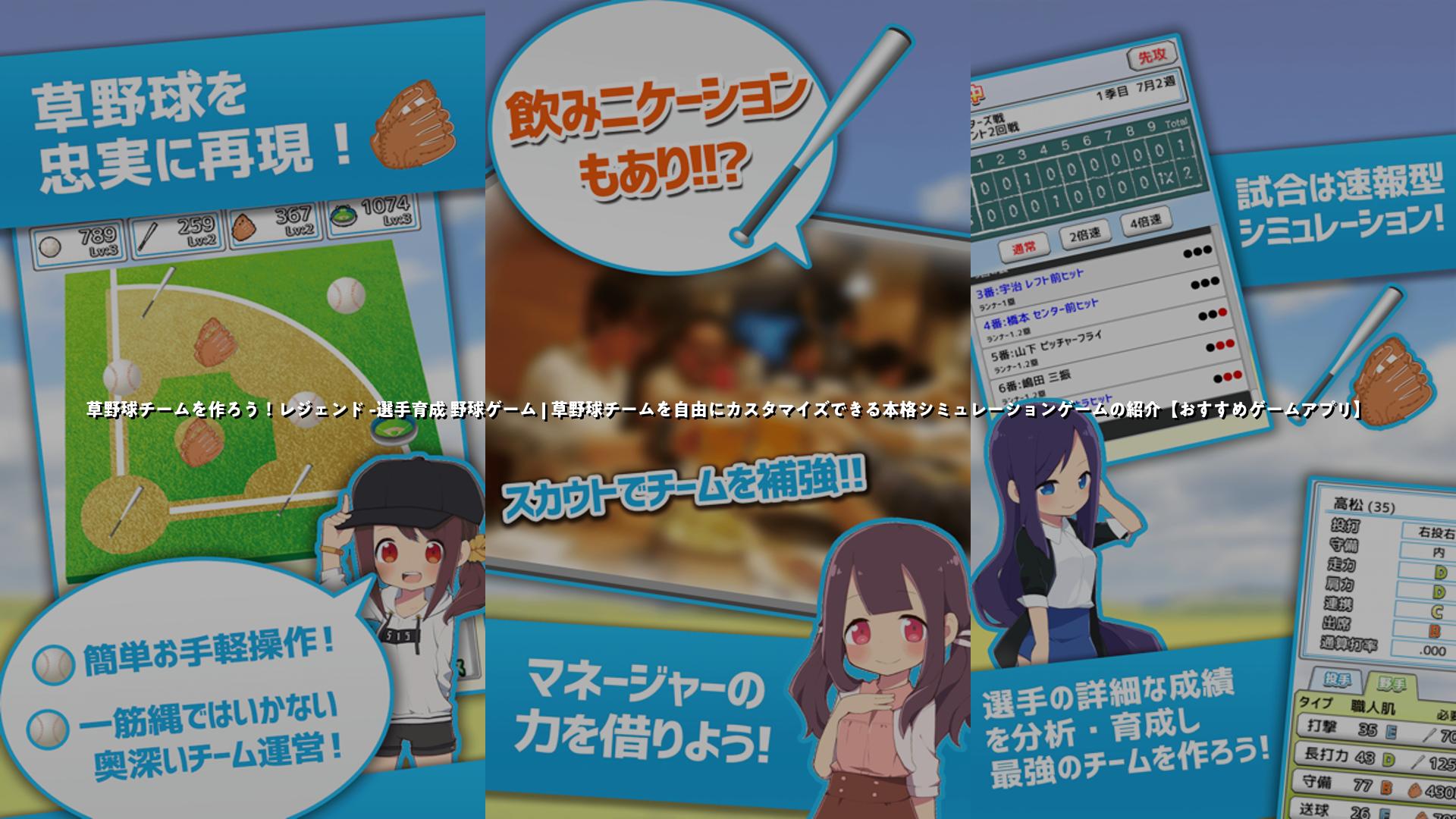 「草野球チームを作ろう!レジェンド -選手育成 野球ゲーム」は、誰でも気軽に楽しめる草野球シミュレーションゲームです。球団運営からプレイヤー育成まで、自分だけのチームを作り上げていくことができ、オススメのアプリです。