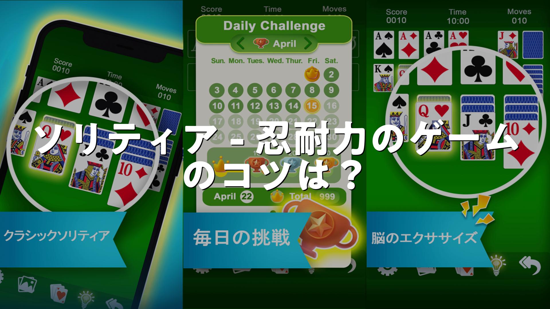 1枚引き・3枚引きなど難易度の調整や毎日のチャレンジ、