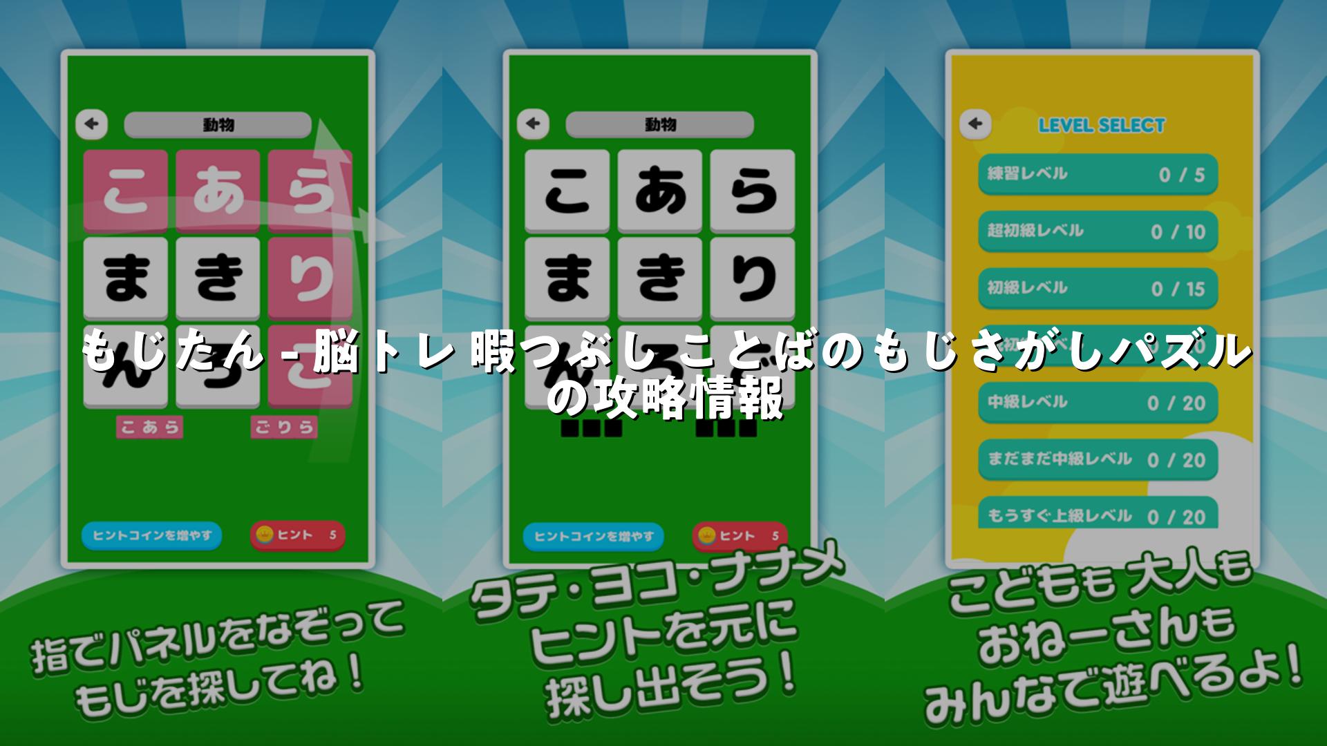 もじたん – 脳トレ 暇つぶし ことばのもじさがしパズルの攻略・初心者向け攻略法・レベルの上げ方