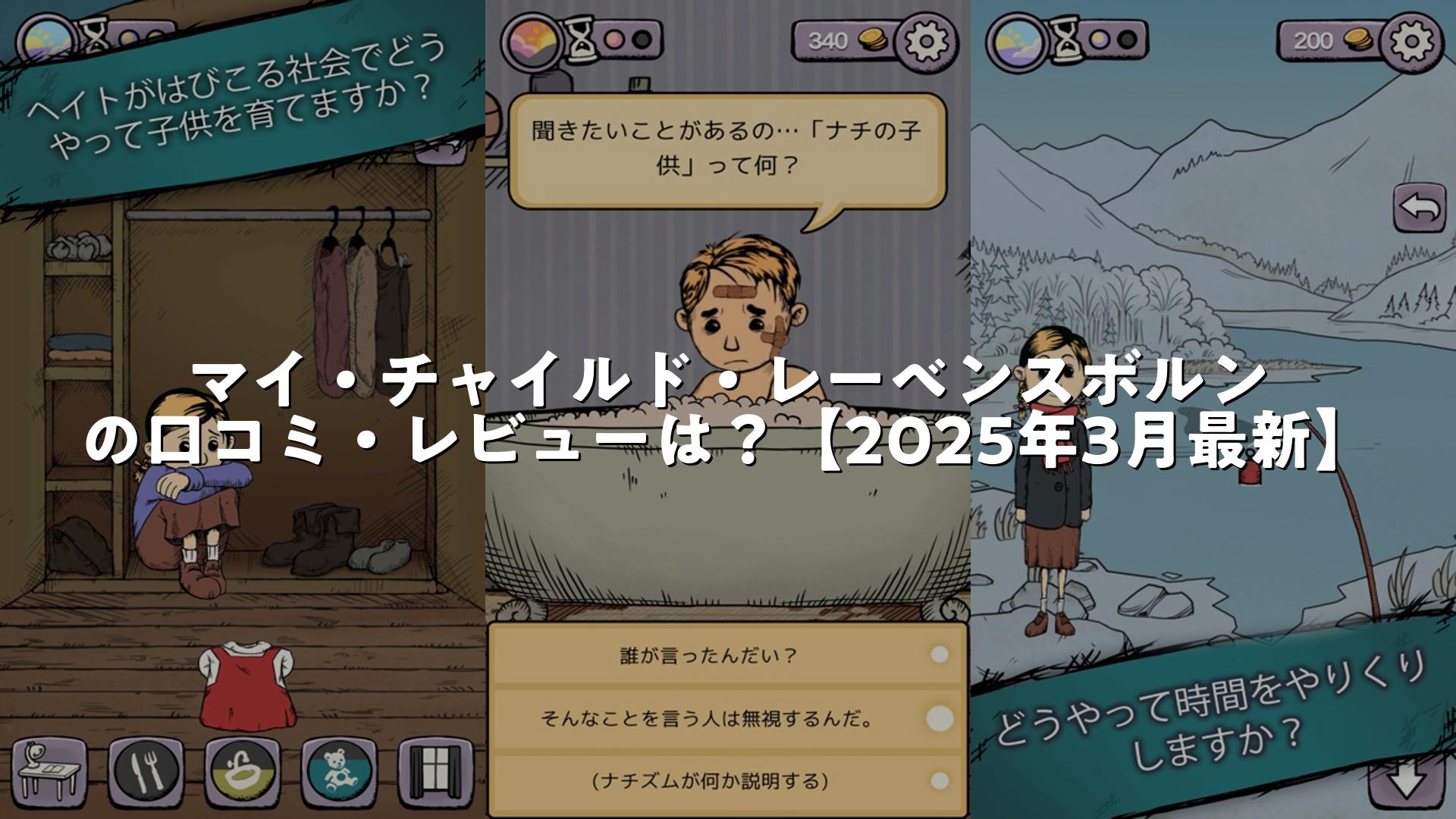 マイ・チャイルド・レーベンスボルンは、実在の歴史的背景を丁寧に描いたストーリーと、子供との絆を深める選択肢が魅力的なゲームです。重厚な内容にも関わらず、1日で完クリできるというプレイ時間の短さも利点と言えるでしょう。