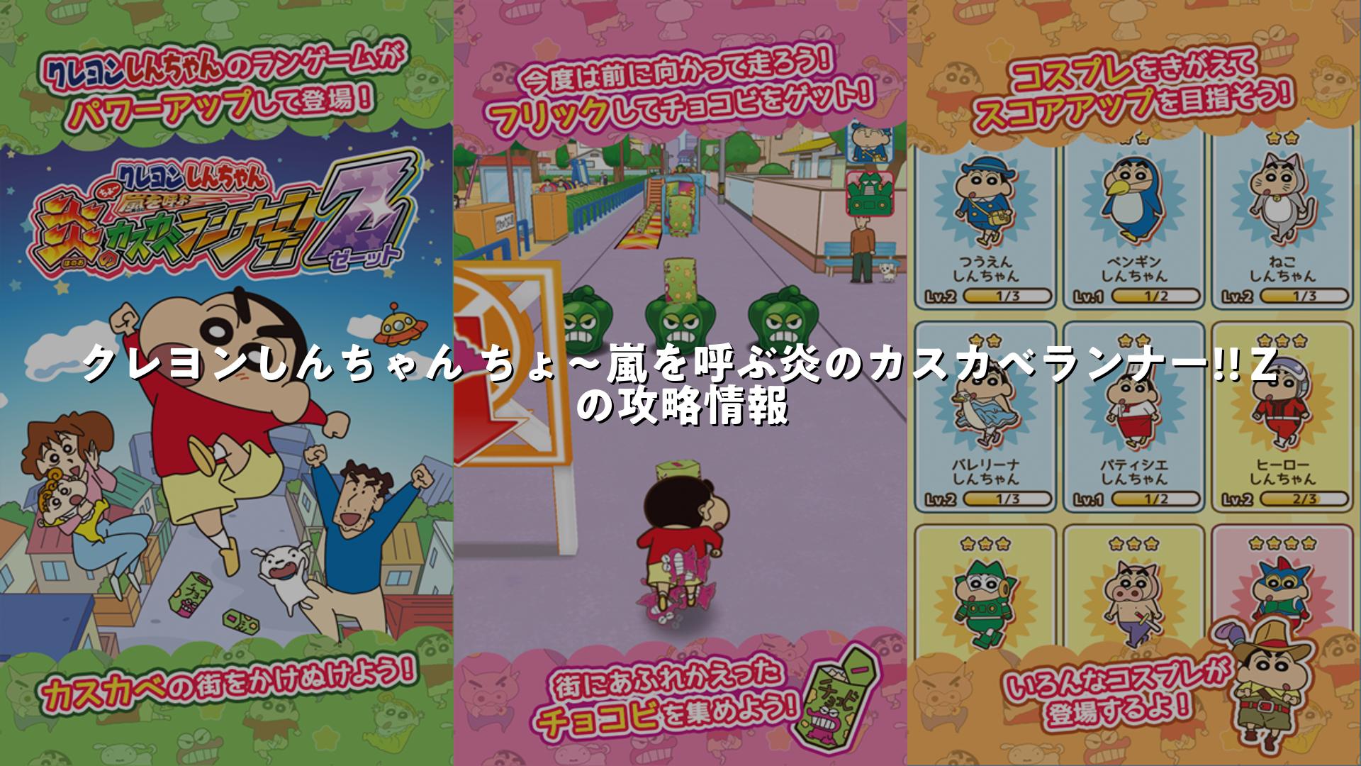 クレヨンしんちゃん ちょ~嵐を呼ぶ炎のカスカベランナー!!Zゲーム名の攻略・初心者向け攻略法・レベルの上げ方をまとめました