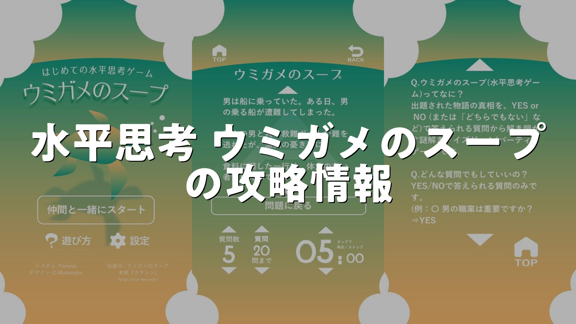 水平思考 ウミガメのスープゲーム名の攻略・初心者向け攻略法・レベルの上げ方をまとめました
