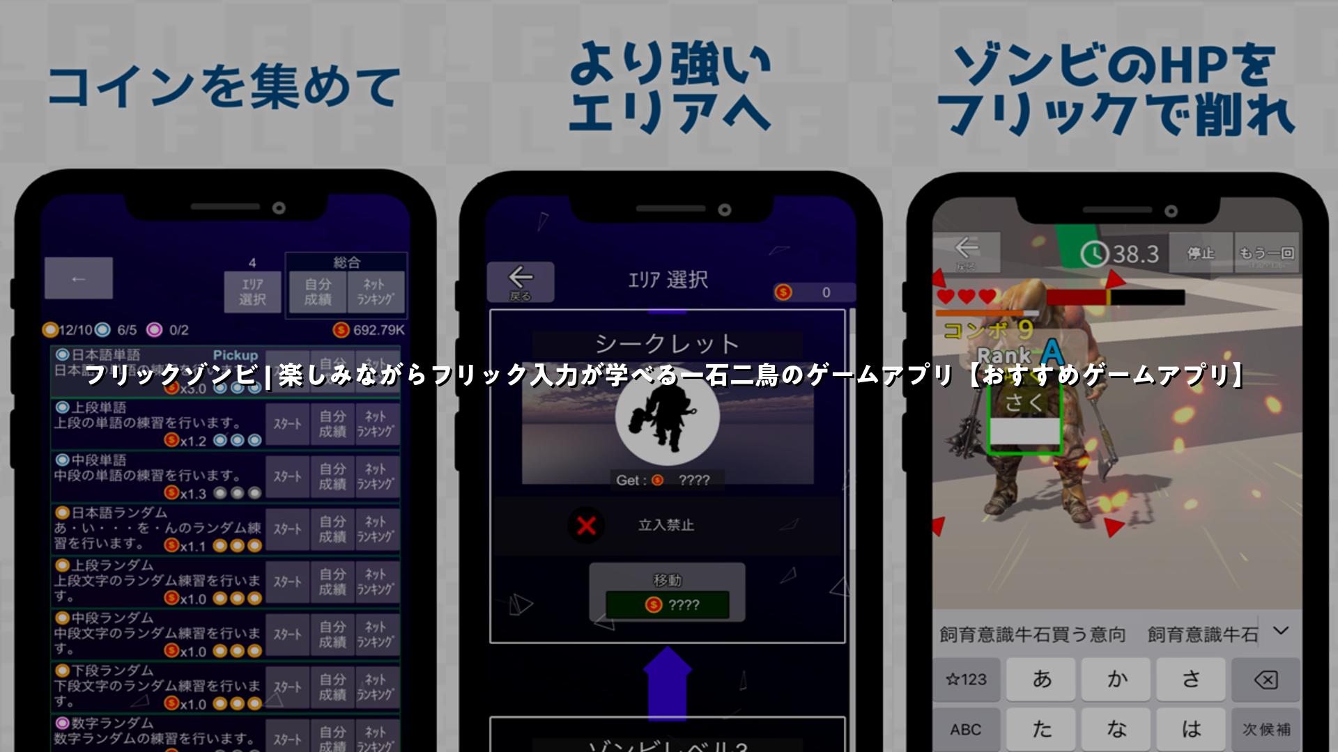 スマホでフリック入力の練習ができるタイピングゲームアプリをご紹介します。フリック入力を楽しみながら学習できる「フリックゾンビ」がおすすめです。