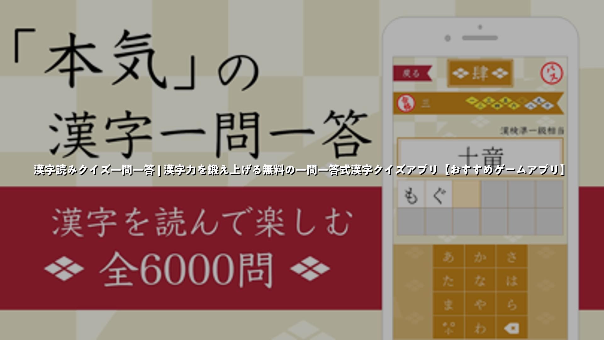 漢字読みクイズ一問一答 | 漢字力を鍛え上げる無料の一問一答式漢字クイズアプリ【おすすめゲームアプリ】