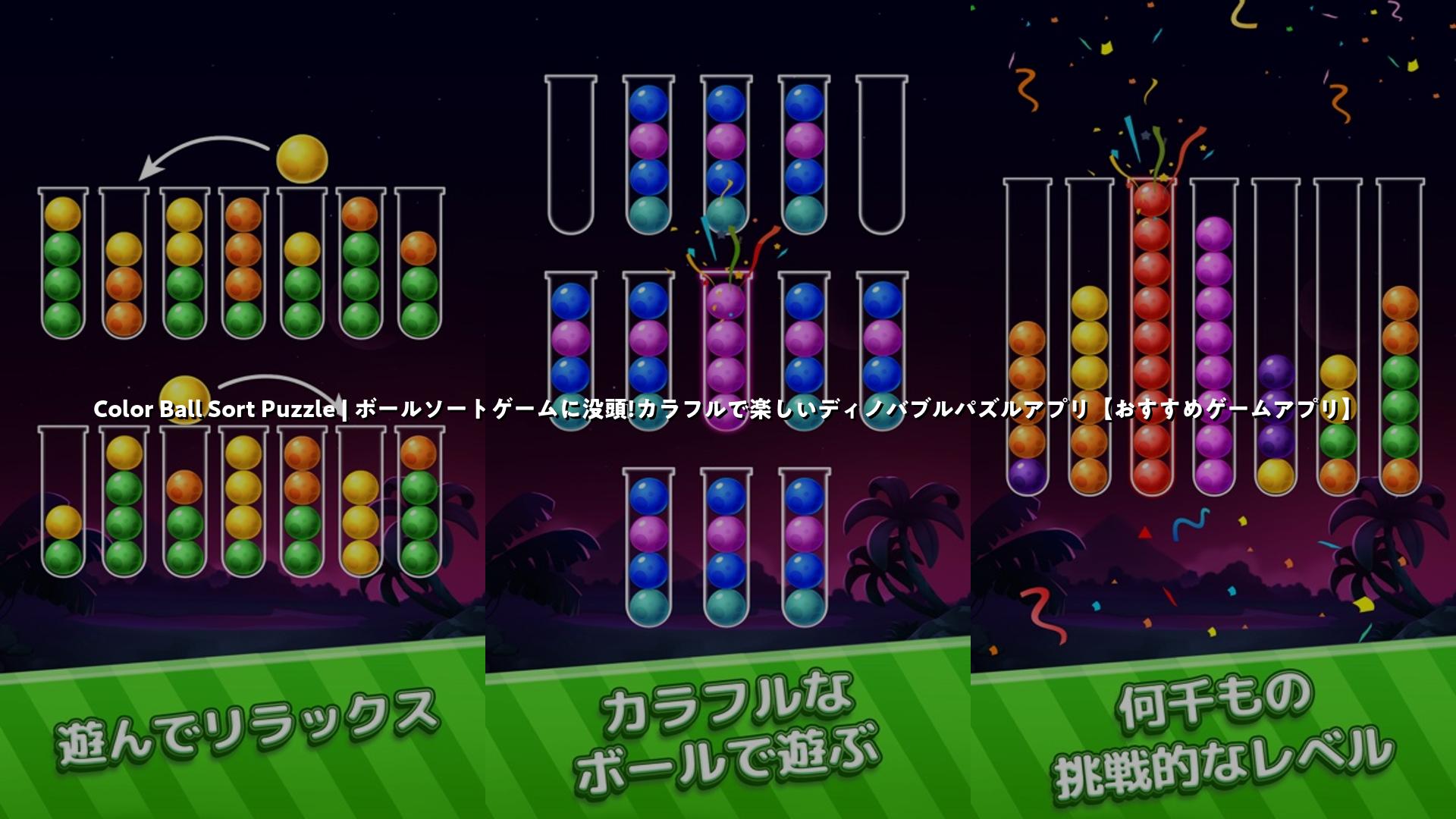 Color Ball Sort Puzzle(ディノバブルソートパズル)は、カラフルなボールを同じ色ごとに並べ替えていく頭の体操ゲームです。シンプルな操作性と短時間で遊べるゲーム性が特徴で、高齢者から子どもまで幅広い層に楽しめるおすすめの「暇つぶし」アプリです。