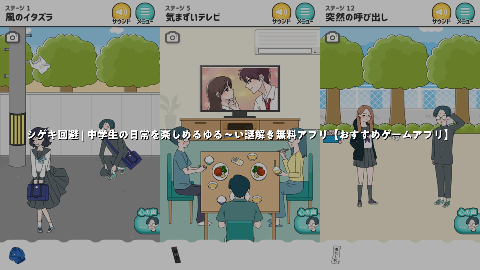 「シゲキ回避」は、ゆる脱出ゲームの金字塔と呼べる作品だと感じました。懐かしさと新鮮さが絶妙な調和を成しており、中学生の日常を舞台にした物語に引き込まれていきました。ゲームシステムも手頃な難易度で、気軽に遊べるのがポイントです。広告も適度な量で、無料ながらも遊び応えのある一作です。(編集部)