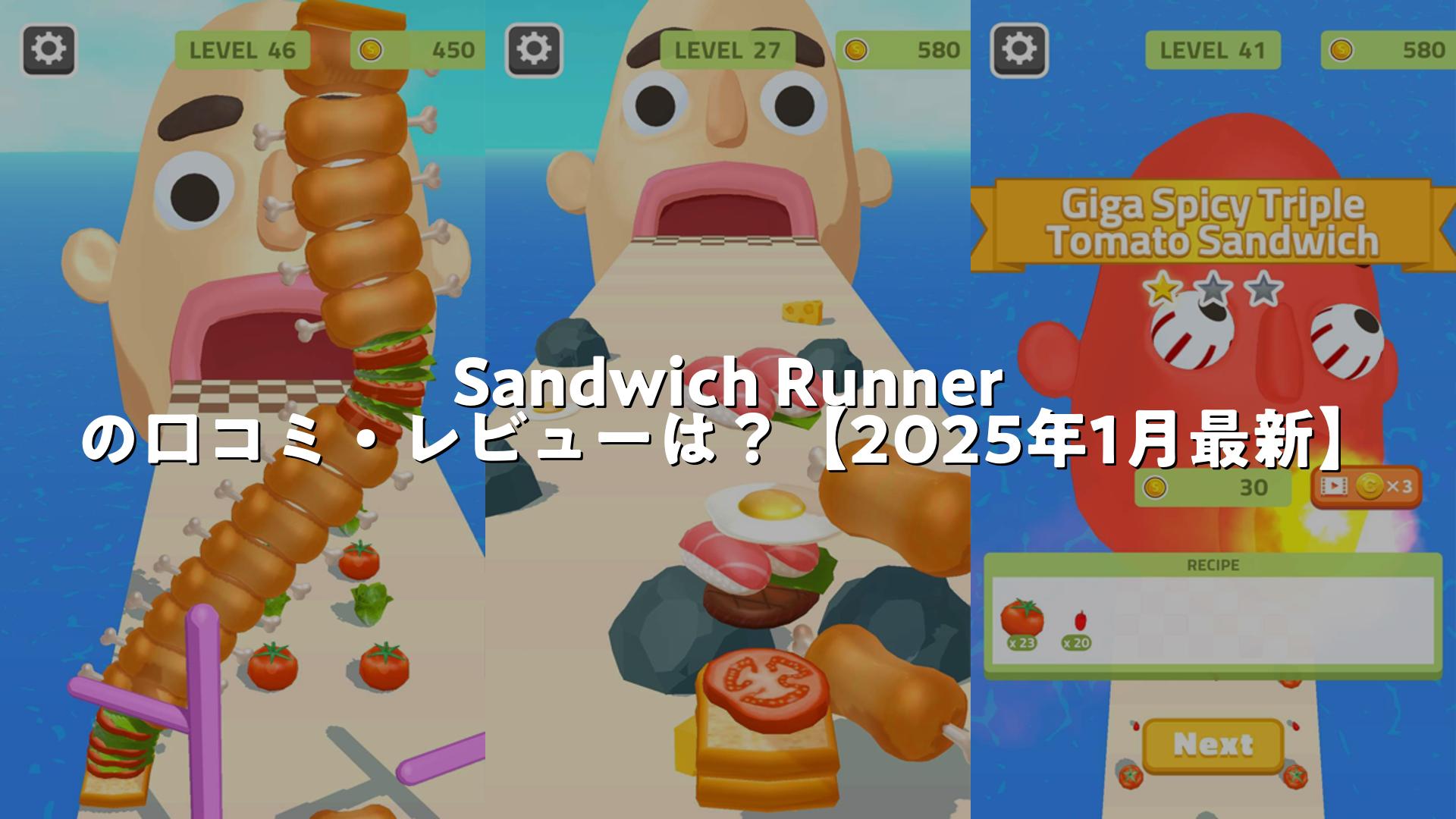 Sandwich Runnerは、ランナーゲームとサンドウィッチ作りが組み合わされた斬新なゲームアプリです。ユーザーの口コミを見ると、ゲーム自体の面白さや楽しさが高く評価されているのがわかります。日本語対応や可愛らしいグラフィックなども好評で、幅広い年齢層に人気を集めているようです。