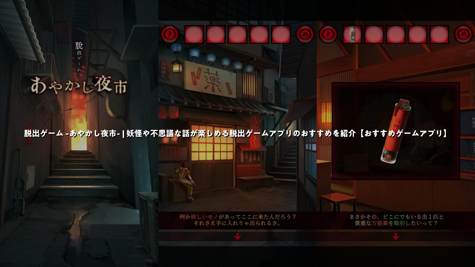 脱出ゲーム -あやかし夜市- | 妖怪や不思議な話が楽しめる脱出ゲームアプリのおすすめを紹介【おすすめゲームアプリ】