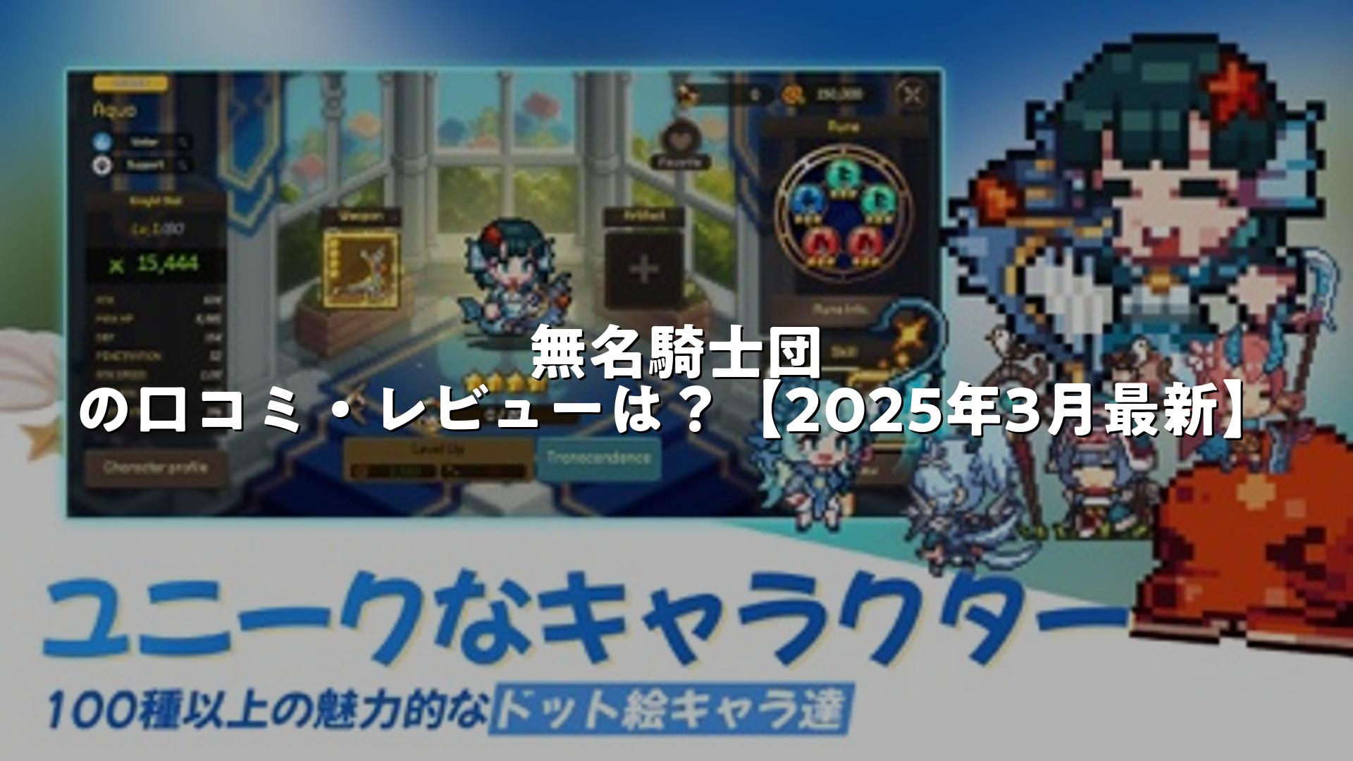 無名騎士団は、ドットグラフィックを特徴とした収集型アクションRPGです。ユーザーからは、ゲームシステムの面白さ、オート戦闘の奥深さ、ガチャの設計など、概して良好な評価が寄せられています。
