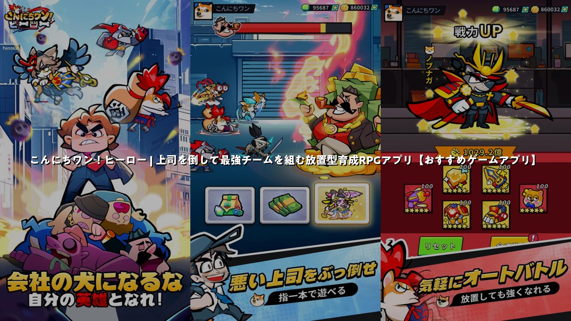 スマートフォンで遊べる、犬神の力を借りて敵に立ち向かうアクションRPGアプリ「こんにちワン!ヒーロー」を紹介します。このアプリは放置プレイができるのが特徴で、寝ている間も自動で戦闘が進むので、ゲームに追われずにのんびり遊べます。