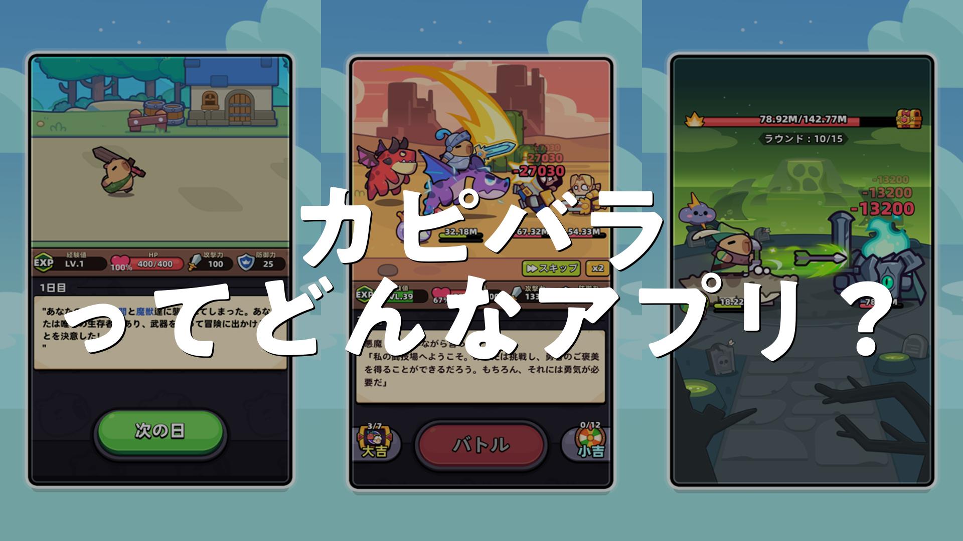 カピバラが可愛らしく、ゲームを通してその愛らしさを存分に味わえる作品です。無課金でも十分に楽しめる設計で、コツコツ遊び続ければ、強くなれるとのこと。操作も簡単で手軽に遊べるのがうれしいポイントです。(編集部)