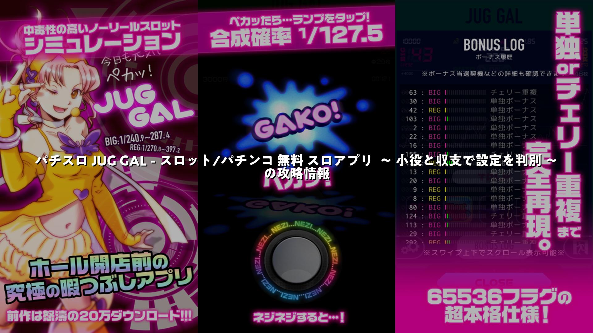 パチスロ JUG GAL – スロット/パチンコ 無料 スロアプリ 〜 小役と収支で設定を判別 〜初心者向けの攻略法とやり方