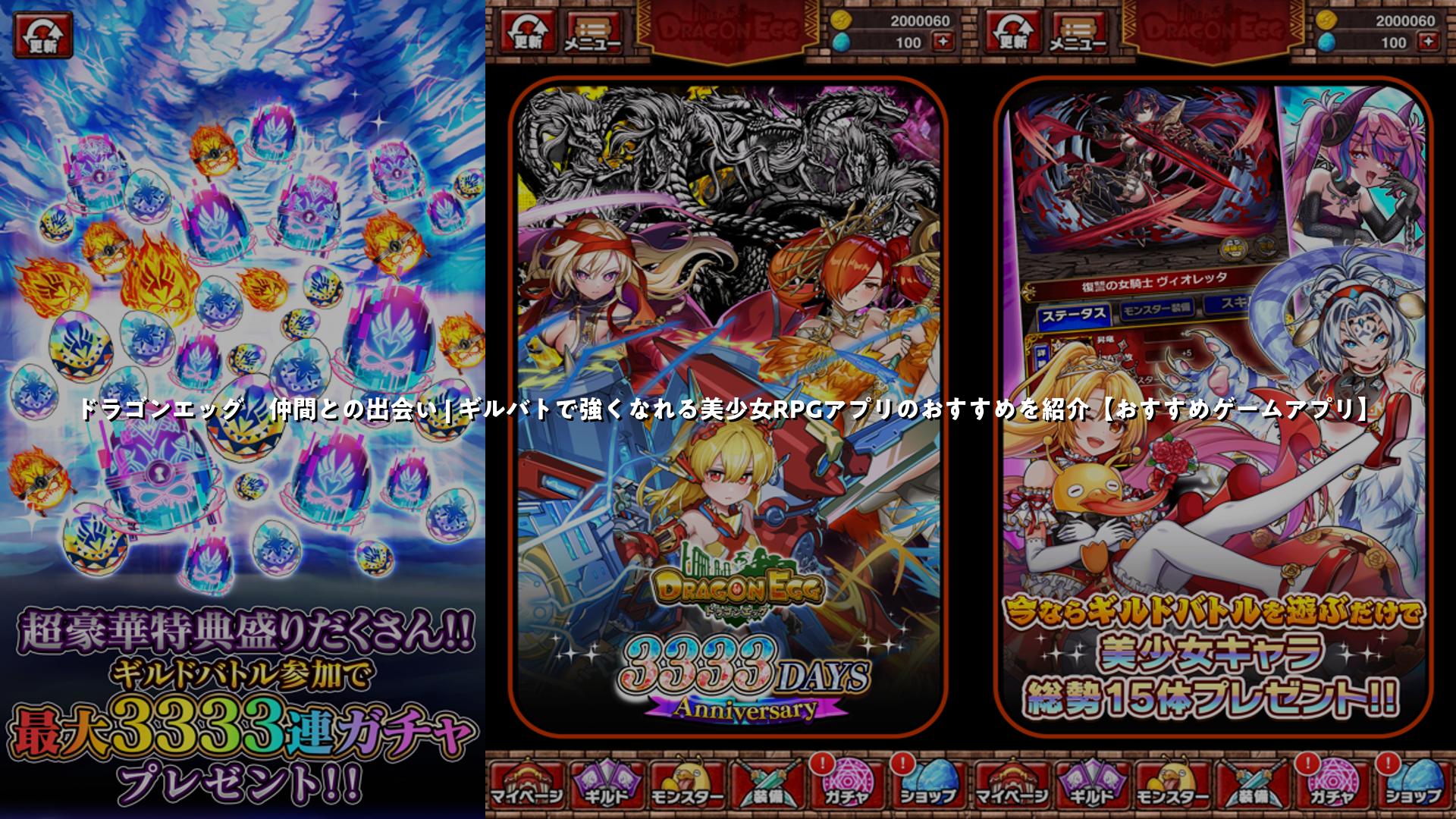 スマホゲームでも人気の[ロールプレイング]ジャンルで遊べる無料アプリ「ドラゴンエッグ」をご紹介します。毎日無料でガチャが引け、仲間との協力プレイも楽しめるおすすめアプリです。