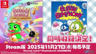 ニュース 『バブルボブル シュガーダンジョン』:Steam版2025年11月27日(木)発売決定!同時収録ソフト『バブルシンフォニー』発表! ニュースの要約 『バブルボブル シュガーダンジョン』のSteam版が2025年11月27日に発売決定 同時収録ソフトとして『バブルシンフォニー』が付属 Nintendo Switch、PlayStation5版も2026年に発売予定概... 2025.08.26 ニュース