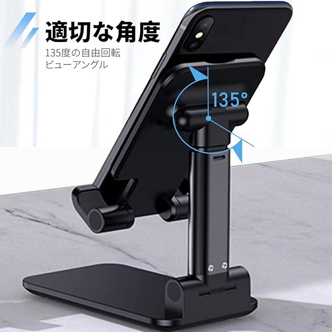 高さと角度を自由に調整できるスマホスタンド。長時間のゲームプレイでも首や肩への負担を軽減し、快適な姿勢を保てます。