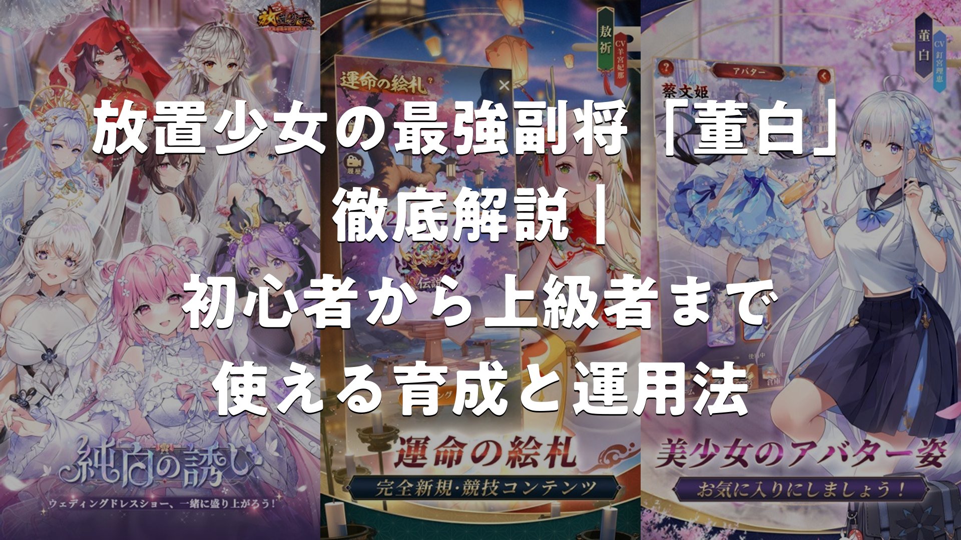 放置少女の魅力的な副将キャラクターの一人である董白は、ゲーム内で高い耐久力と攻撃性能を兼ね備えた存在として、多くのプレイヤーに支持されています。彼女のスキルセットは復活メカニズムを活用した長期戦向きの設計が特徴で、特にMRアバター「青春の歌」董白は、復活時に強力な状態異常を付与し、戦況を逆転させるポテンシャルを秘めています。この解説では、董白の基本性能から各種アバターの詳細、運用方法までを多角的に掘り下げ、プレイヤーが効果的に活用するためのポジティブな情報を中心に紹介します。