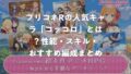 闘技場では特に優れた性能を発揮します。攻撃力の高い味方2名を超強化しつつ、スキル2で敵の主力を撃破できるため、対人戦での勝率向上に大きく貢献します。