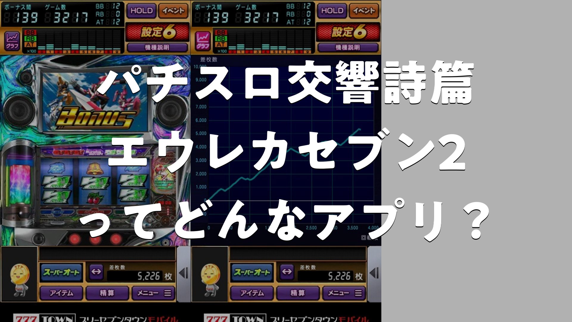 パチスロ交響詩篇エウレカセブン2は、アニメ『交響詩篇エウレカセブン』を題材にしたサミーの人気パチスロ機のスマホアプリ版です。前作から4年の時を経て登場し、純増約2.8枚のAT機を実現。ボーナスとARTのバランスが絶妙で、ゲーム数の上乗せがボーナス抽選につながる「第3のボーナス抽選」も搭載されています。演出は前作のボリュームを超え、臨場感あふれる体験が可能です。さらに、「777TOWN mobile」内の遊び放題コース(1,100円税込/月)に登録すると、他のパチンコ・スロットアプリも遊び放題になるのも魅力です。