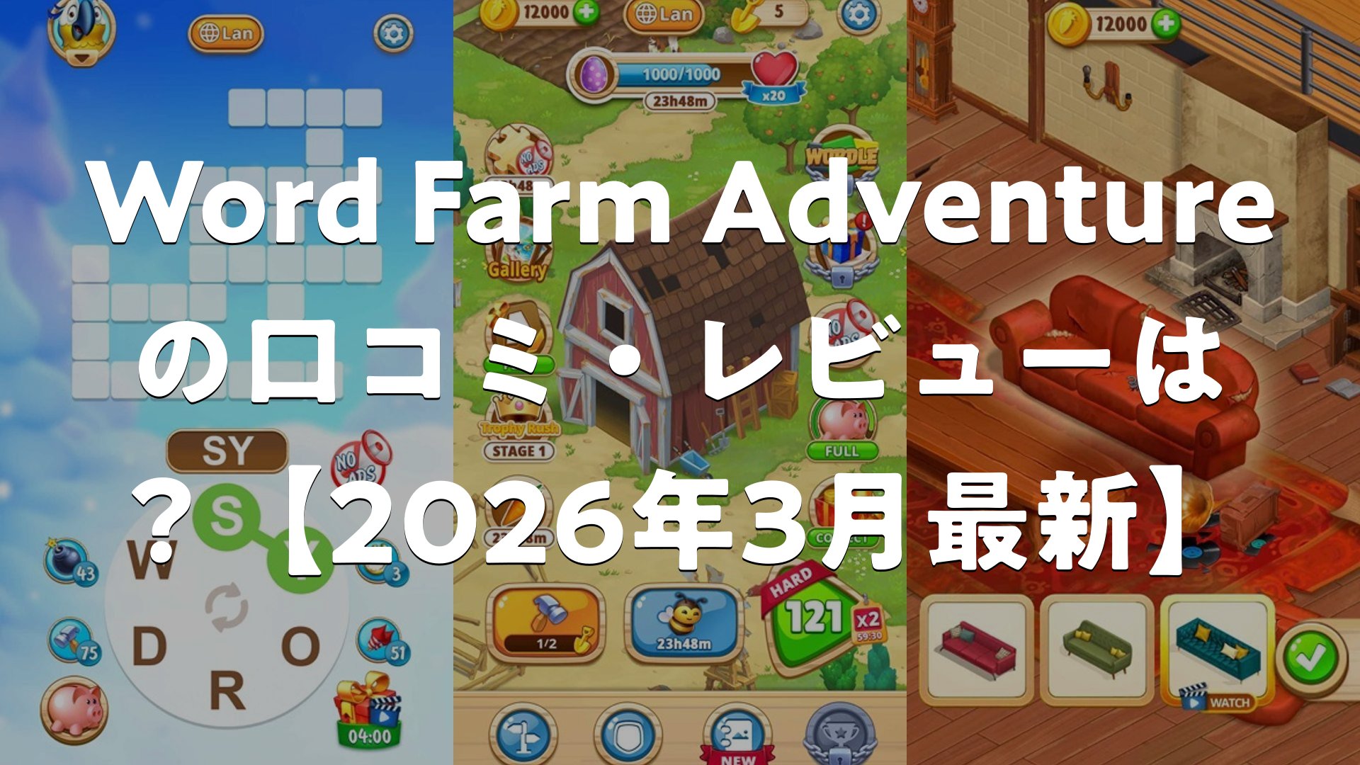 Word Farm Adventureは、特にワードパズルが好きな人や、脳トレを兼ねてゲームを楽しみたい人にはおすすめのアプリです。