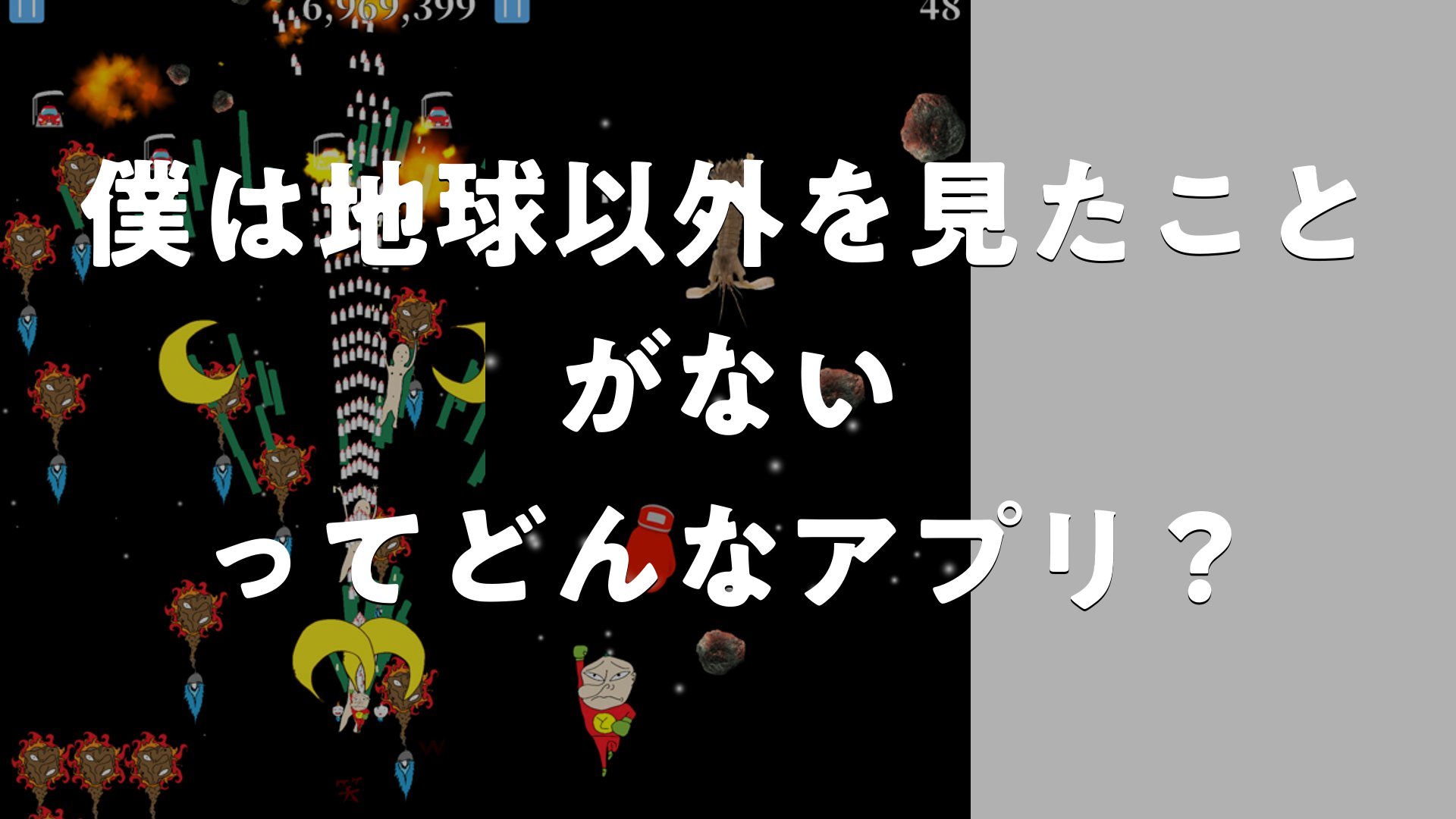 東海オンエア文系チームが手掛けたシューティングゲーム「僕は地球以外を見たことがない」は、爽快感あふれる戦闘と武器のカスタマイズが楽しいアプリです。ボスを倒して強化しながら、宇宙の果てを目指すワクワク感が味わえますよ!初心者でも挑戦しやすい設計で、気軽に遊べるのが魅力です。