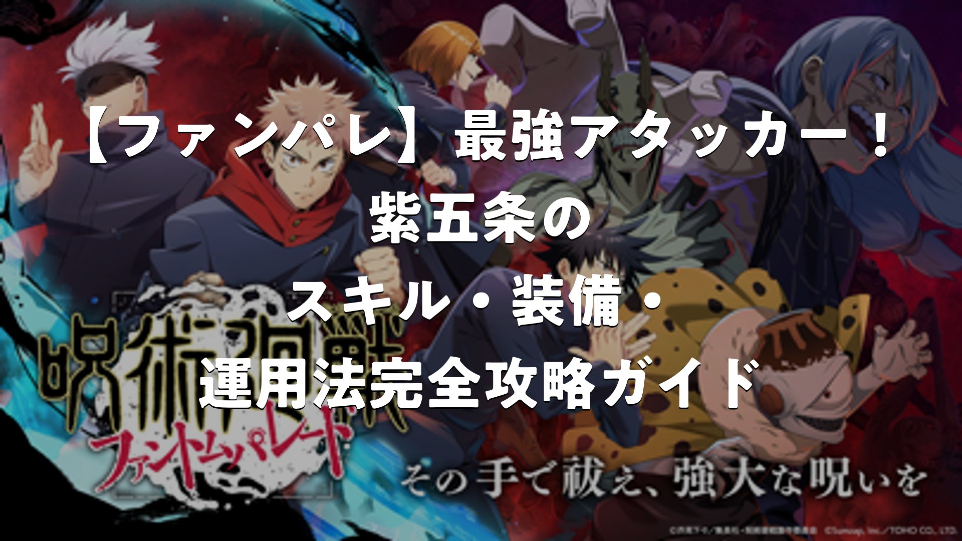 「ファンパレ」こと『呪術廻戦ファントムパレード』に登場する五条悟の虚式「茈」バージョンは、ゲーム内でも最高峰の性能を持つアタッカーキャラクターです。このキャラクターは弱体役という分類ながら、圧倒的な火力と無敵持ちの攻撃能力を兼ね備えており、短期決戦において非常に優れた活躍が期待できます。