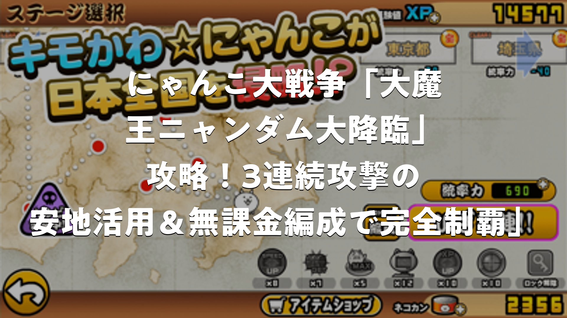 にゃんこ大戦争「大魔王ニャンダム大降臨」攻略!3連続攻撃の安地活用&無課金編成で完全制覇」をまとめました