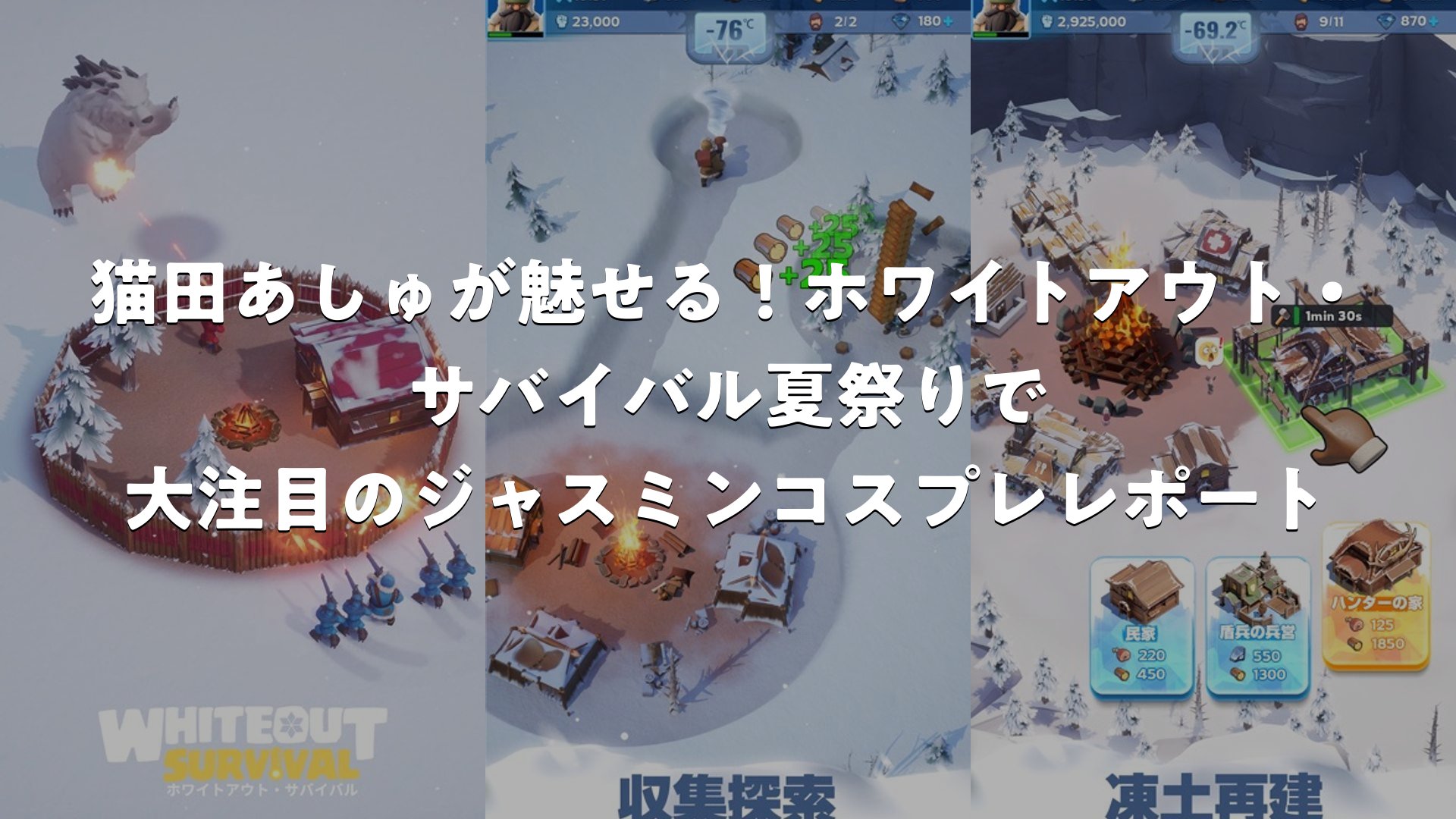 ホワイトアウト・サバイバル(通称ホワサバは、極寒の氷雪世界を舞台にコロニーを運営し、生存者を守りながら発展させるサバイバルシミュレーションゲームです。このゲーム内で人気のキャラクタージャスミンを、コスプレイヤーの猫田あしゅさんが魅力的に演じたイベントが、ファンの間で大きな話題となりました。東京の人気スポットで開催された夏祭りイベントでは、猫田あしゅさんのジャスミン姿が多くの来場者を魅了し、ゲームの世界観をリアルに体現する素晴らしい機会を提供しました。この解説では、ゲームの概要からイベントの詳細、猫田あしゅさんの活躍、そして関連する魅力的なポイントを多角的に掘り下げ、プレイヤーやファンにとって役立つ情報をたっぷりお届けします。