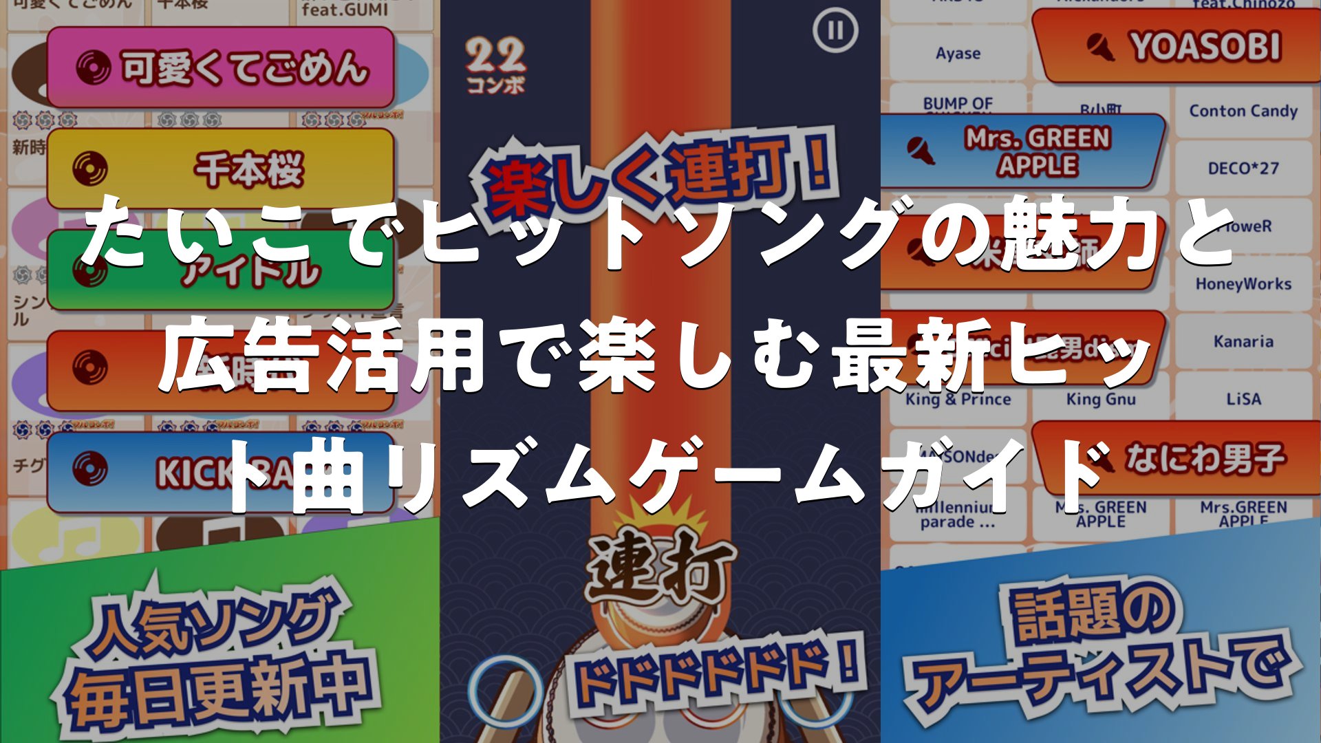たいこでヒットソングの魅力と広告活用で楽しむ最新ヒット曲リズムゲームガイドをまとめました