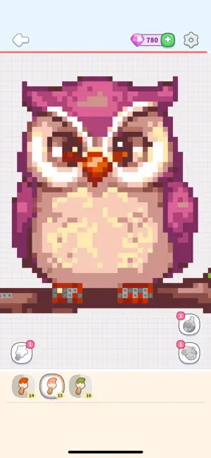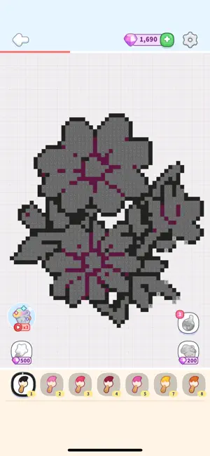 また、プレイを助ける3つのパワーアップアイテムも用意されています。指でなぞるだけで塗れる「マジックワンド」、同じ色の隣接タイルを一括で塗れる「ペイントバケツ」、円形に広がって一気に塗れる「フラワーボム」があり、細かい部分や大きなエリアも効率よく進められます。困ったときは数字を2回タップするだけでヒントが無料で使えるのも親切なポイントです。レベルクリアごとにゲーム内通貨がもらえるほか、100以上の実績解除要素もあり、コレクション好きにも楽しめる設計になっています。
