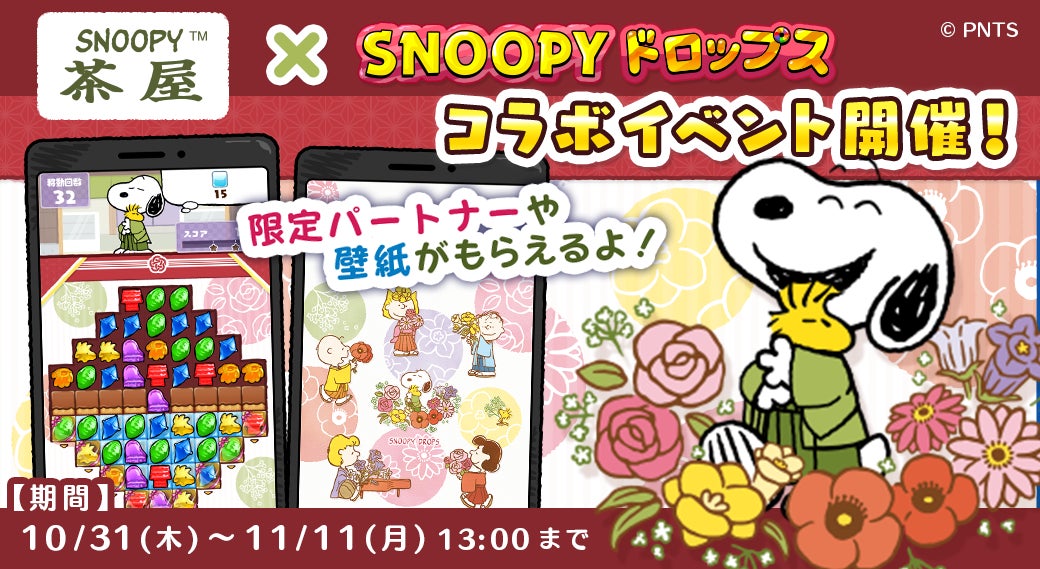 カプコンが提供するスマホ向けパズルゲーム『スヌーピードロップス』にて、10周年を迎えた和のテイストが魅力の「SNOOPY茶屋」とのコラボイベントが2024年10月31日よりスタートしました。期間は11月11日の13時までとなっており、この限定イベントでは、特別に制作された和風テイストの可愛らしいスヌーピーアートや、「SNOOPY茶屋」ならではの雰囲気を楽しめるコラボ限定壁紙やゲーム内パートナーが登場します。