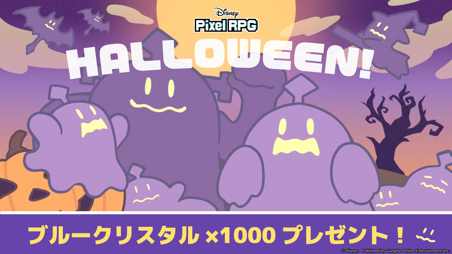 ・『ディズニー ピクセルRPG』がハロウィーン期間限定で「ブルークリスタル1,000個」をプレゼント。