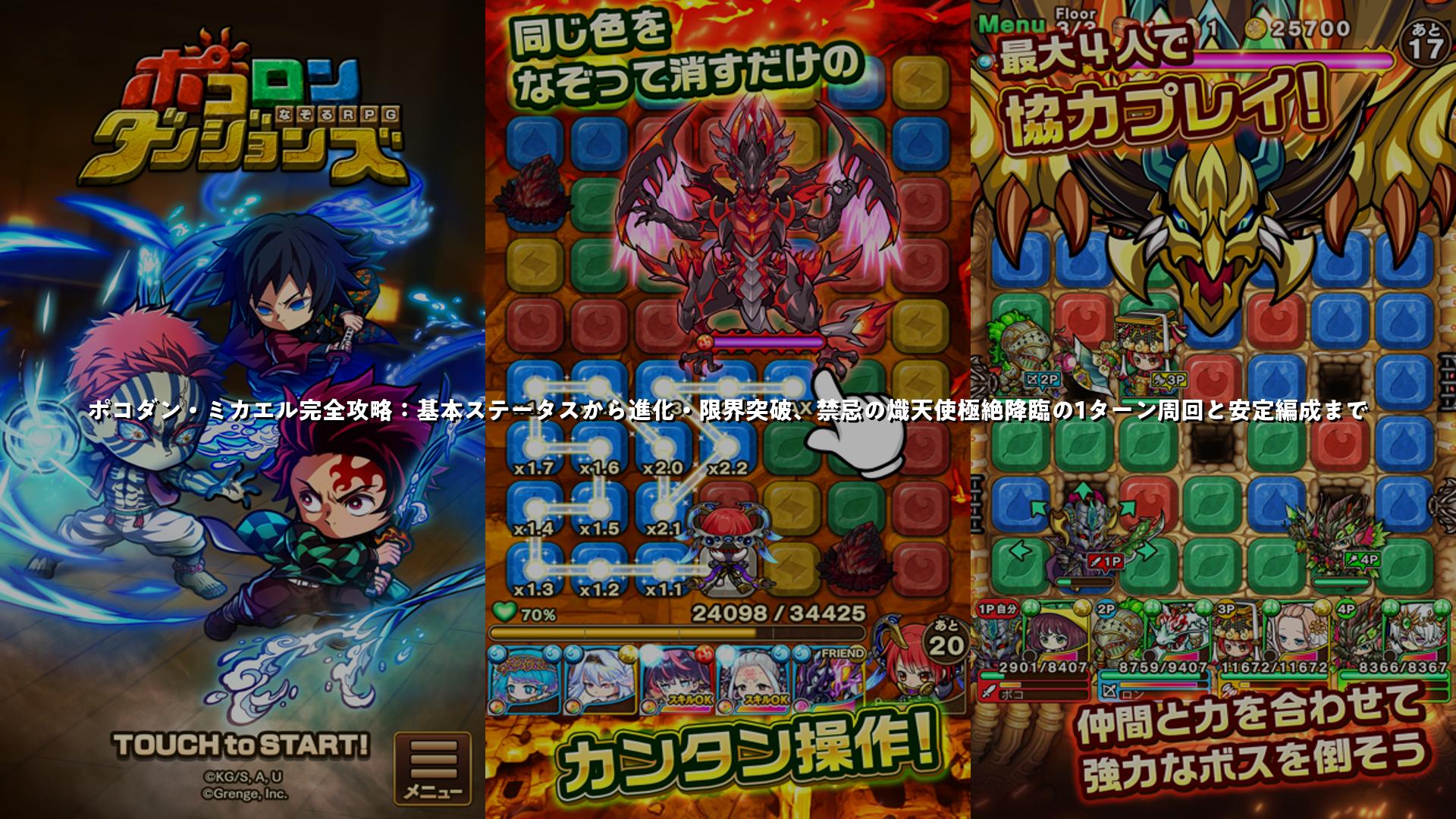 ポコダン・ミカエル完全攻略:基本ステータスから進化・限界突破、禁忌の熾天使極絶降臨の1ターン周回と安定編成まで