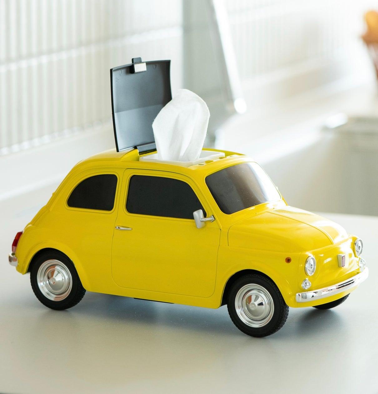 ティッシュケースはFIAT 500のクラシックなデザインを忠実に再現しており、リビングやキッチンなど様々な場所で活躍してくれそうです。