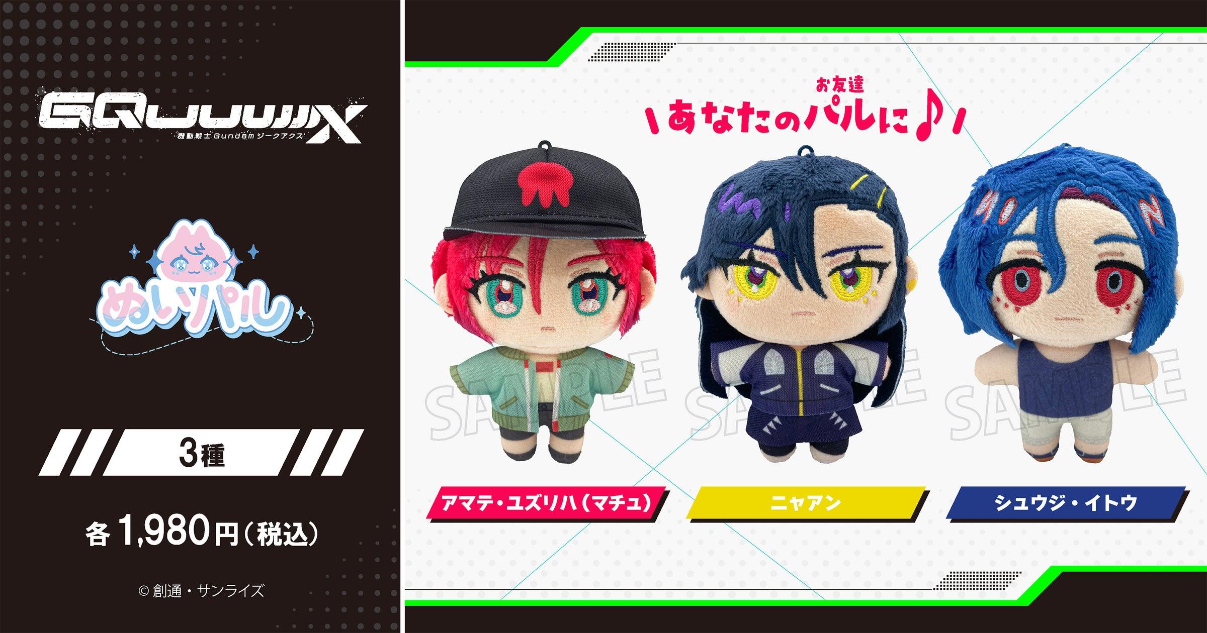 人気アニメ『機動戦士Gundam GQuuuuuuX』の可愛いキャラクターたちが、手のひらサイズのぬいぐるみとして登場します。