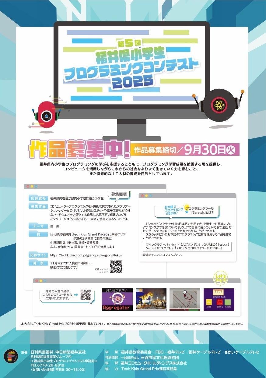 日刊県民福井と中日新聞福井支社は、福井県内の小学生を対象にした第5回福井県小学生プログラミングコンテストを2025年に開催することを発表しました。