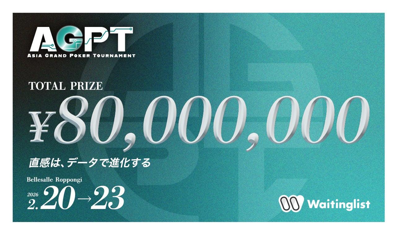 株式会社Waitinglistは、2026年2月20日(金)~23日(月・祝)の4日間、プライズ総額8,000万円(予定)のアジア発の次世代ポーカー大会「Asia Grand Poker Tournament(AGPT)」を、ベルサール六本木にて開催することを発表しました。