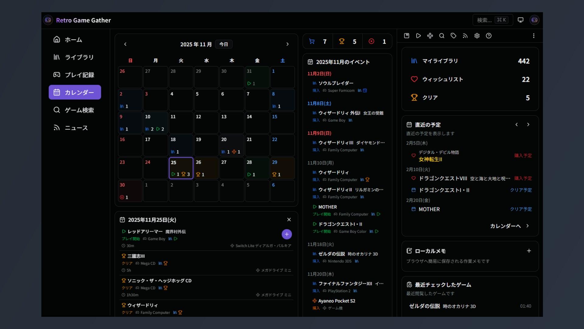 Retro Game Gather:レトロゲーム管理サービスが大型進化!カレンダーで『遊んだ記憶』をより鮮明に。検索や UI も大幅改善についてまとめました
