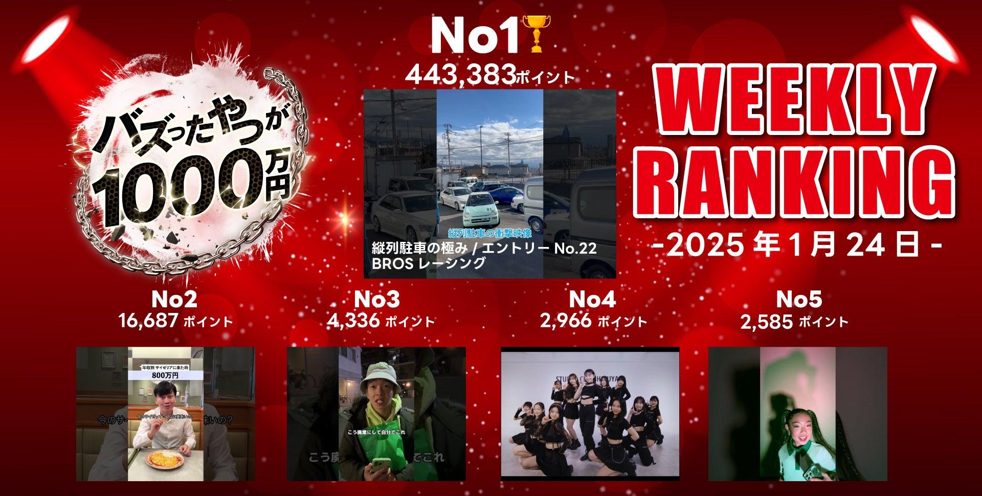 株式会社BUZZ GROUPより、「動画コンテスト『バズったやつが1000万円』の週間ランキングが発表された。