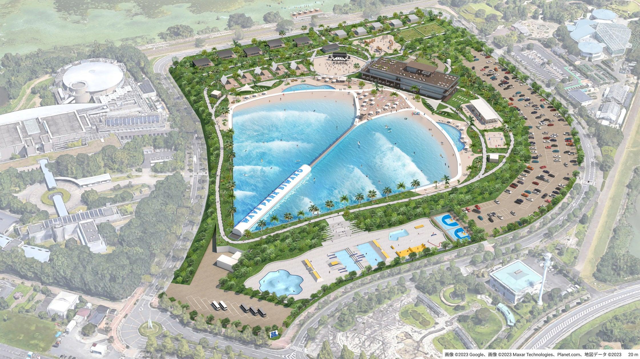 人工サーフィン施設は、スペインのWAVE GARDEN社との業務提携によって実現するもので、敷地面積9haという大規模なものとなる予定です。飲食店、商業施設、宿泊施設なども備え、2028年中の開業を目指しています。
