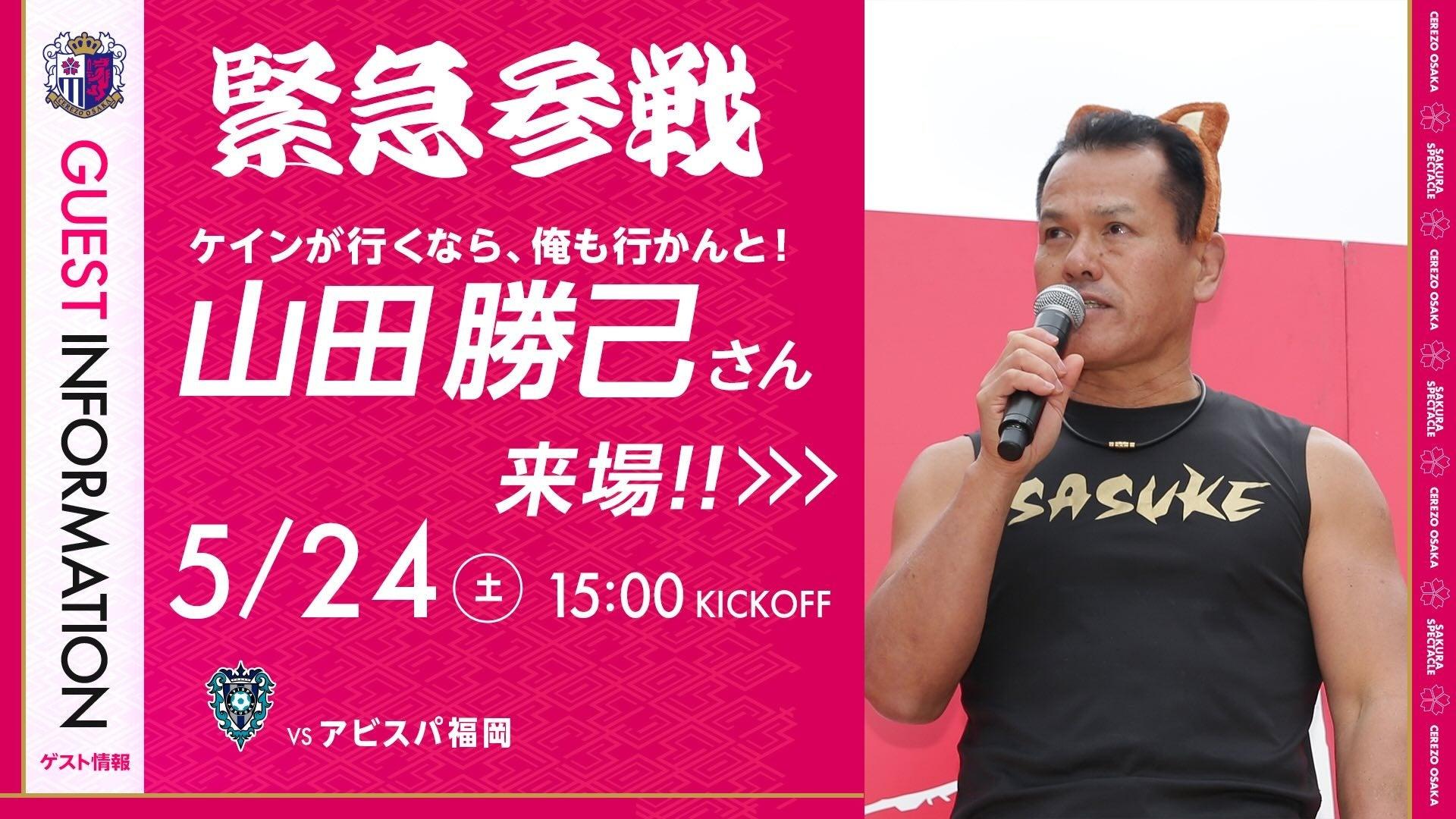 セレッソ大阪は、5月24日(土)の福岡戦で、スポーツタレントの山田勝己さんの緊急参戦が決定したことを発表しました。